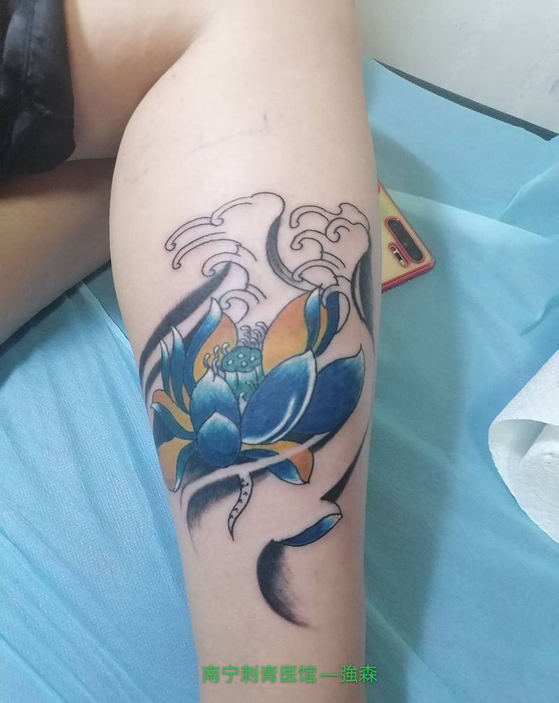当前位置: 首页 >广西南宁市纹身店-彫學長刺青纹身图案>莲花纹身图片_腿部老传统纹身图案