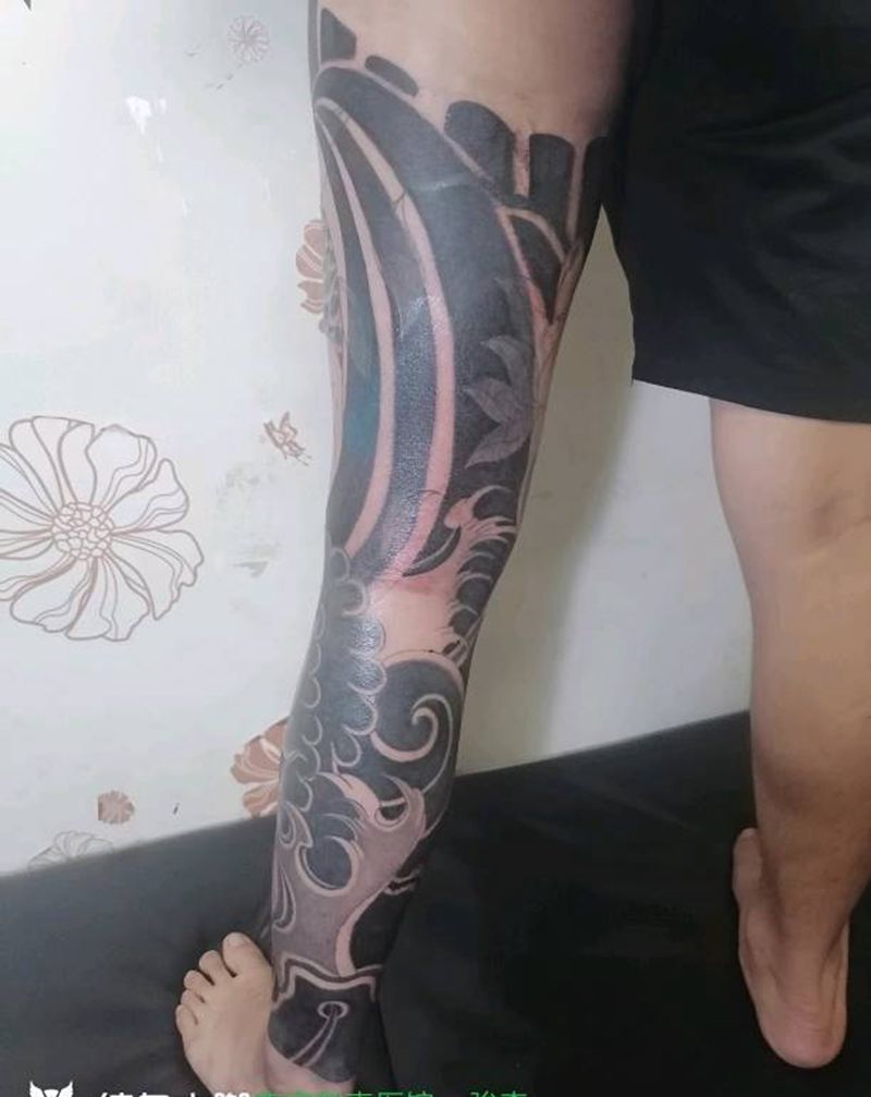 • T网红王老大花腿龙纹身图片_腿部新传统纹身图案