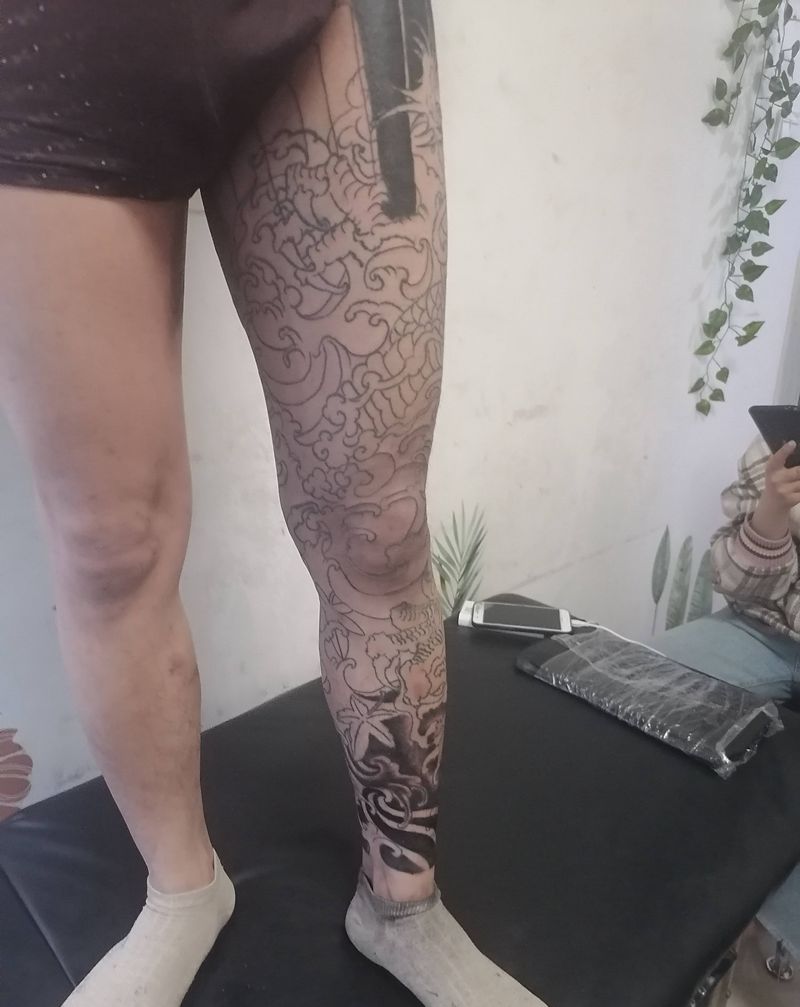 当前位置: 首页 >广西南宁市纹身店-彫學長刺青纹身图案>修改失败花腿龙纹身图片_腿部老传统纹身图案