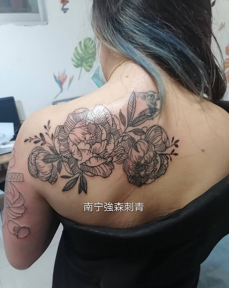 黑灰满背纹身图案