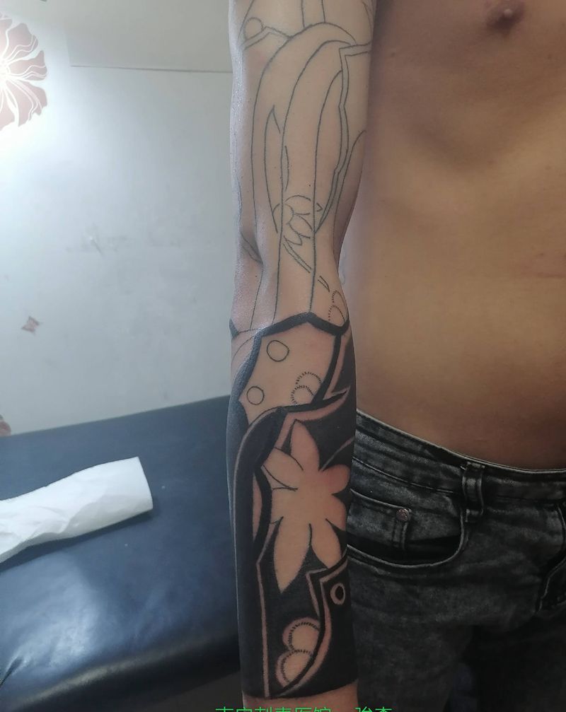 当前位置: 首页 >广西南宁市纹身店-彫學長刺青纹身图案>(原创浪臂)开始上色咯纹身图片_手臂纹身图案