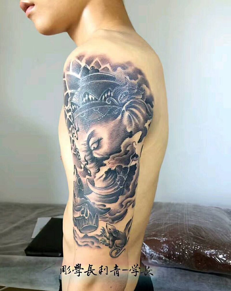 当前位置: 首页 >广西南宁市纹身店-彫學長刺青纹身图案>手臂象神纹身图片