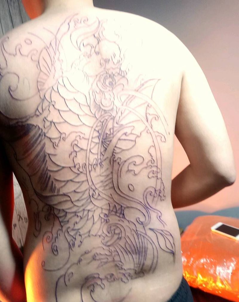 当前位置: 首页 >广西南宁市纹身店-彫學長刺青纹身图案>满背鲤鱼纹身图片