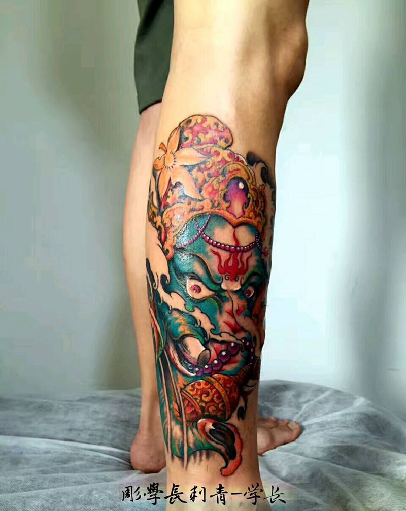 当前位置: 首页 >广西南宁市纹身店-彫學長刺青纹身图案>小腿彩色象神纹身图片