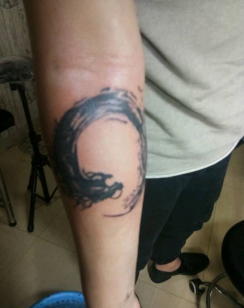 当前位置: 首页 >广西南宁市纹身店-彫學長刺青纹身图案>泼墨风格的龙纹身图片