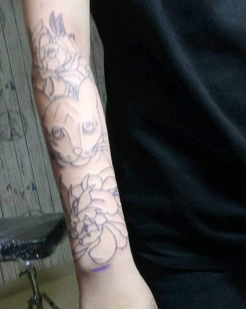当前位置: 首页 >广西南宁市纹身店-彫學長刺青纹身图案>猫和牡丹纹身图片