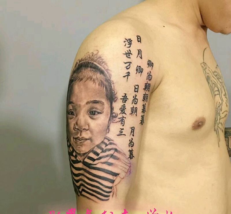 当前位置: 首页 >广西南宁市纹身店-彫學長刺青纹身图案>手臂肖像纹身图片