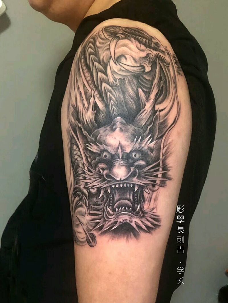 • T网红王老大花腿龙纹身图片_腿部新传统纹身图案