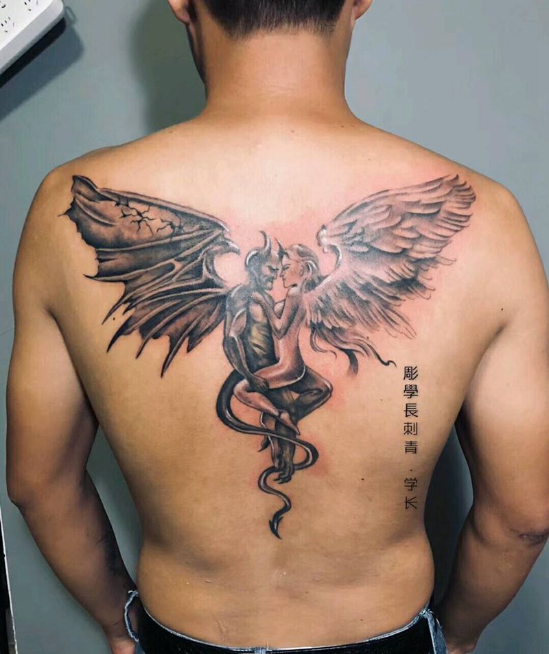 黑灰满背纹身图案