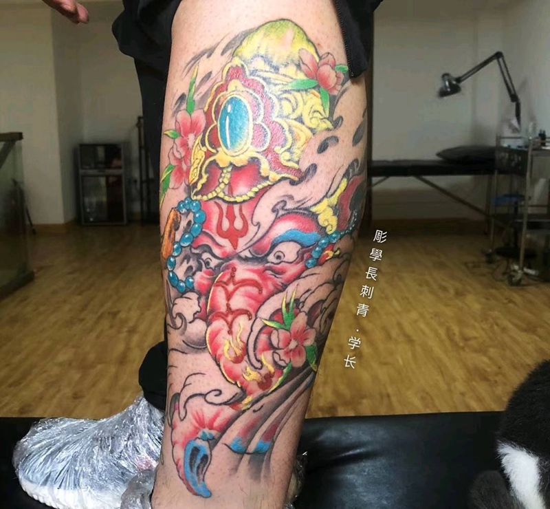 • T网红王老大花腿龙纹身图片_腿部新传统纹身图案