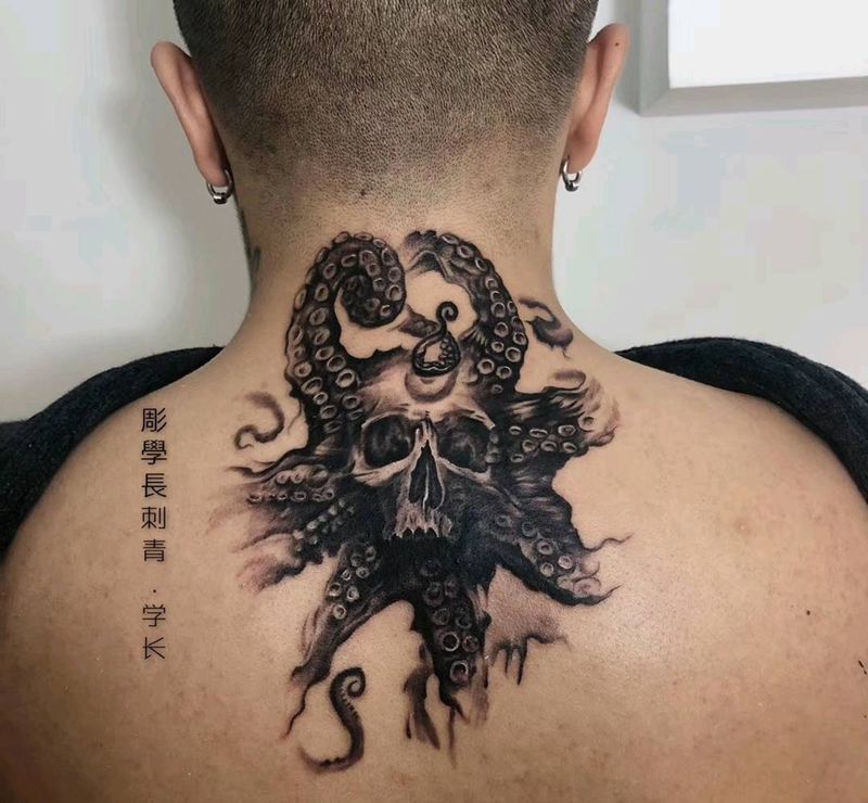 黑灰满背纹身图案