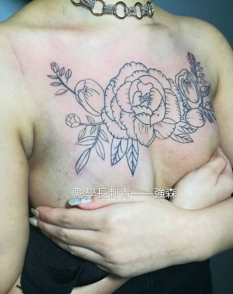 • 女性大花胸纹身_43张霸气漂亮的女性大花胸纹身图案作品