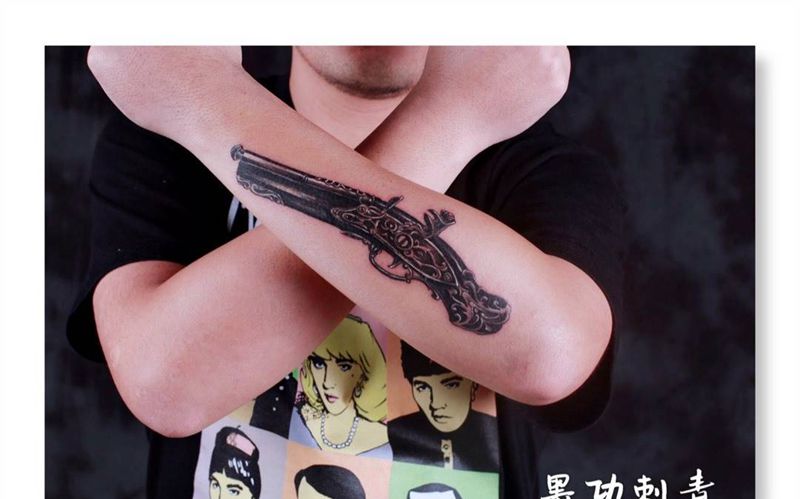 当前位置: 首页 >广西南宁市纹身店-墨功刺青纹身图案>枪纹身图片