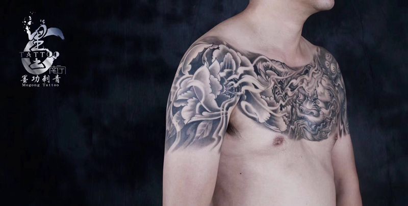 黑灰满背纹身图案