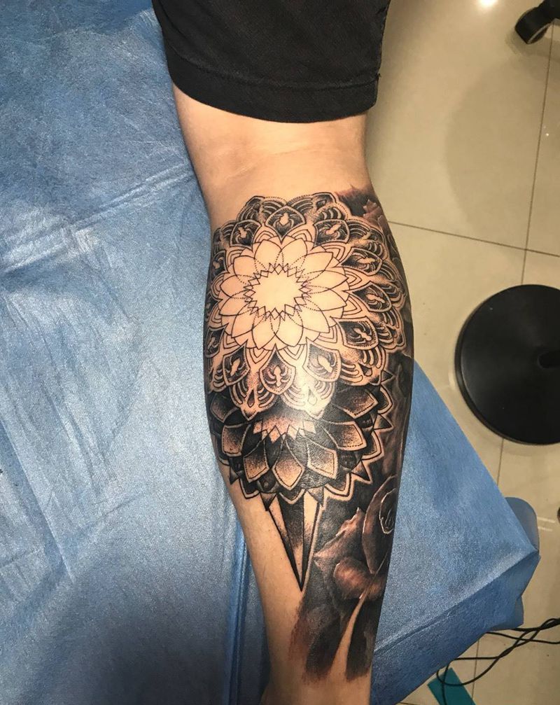 • T网红王老大花腿龙纹身图片_腿部新传统纹身图案