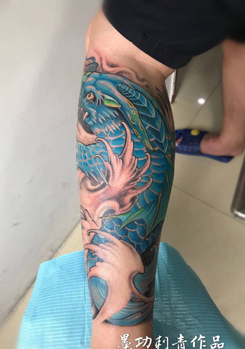 • T网红王老大花腿龙纹身图片_腿部新传统纹身图案