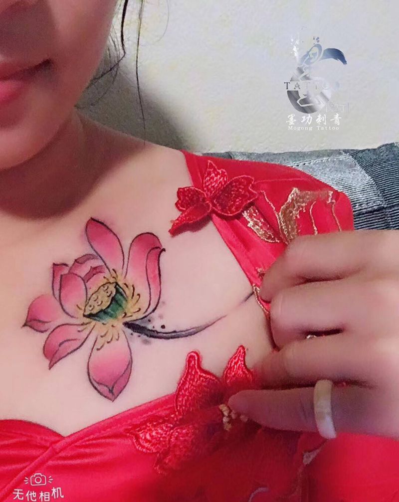 一组15张莲花纹身手