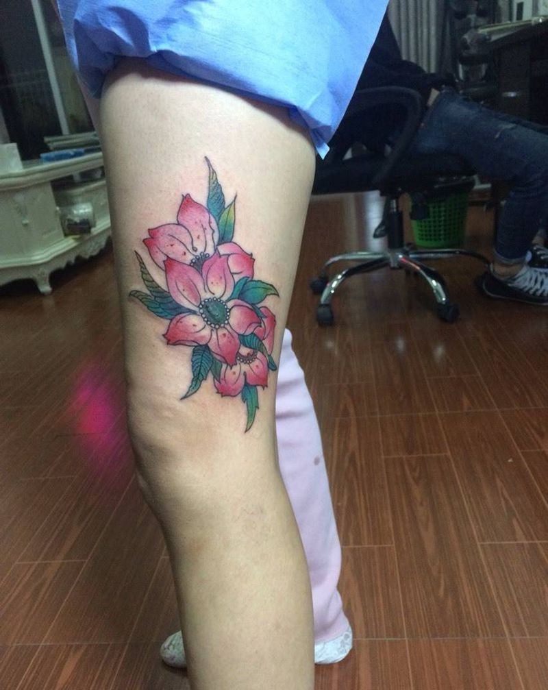 • T网红王老大花腿龙纹身图片_腿部新传统纹身图案