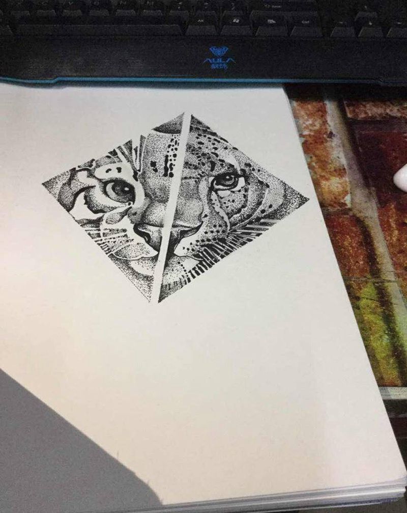 • H老虎纹身手稿图案大全