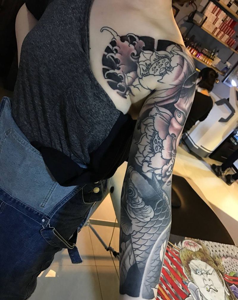 当前位置: 首页 >广西南宁市纹身店-云鹤刺青纹身店纹身图案>半胛七分般若纹身图片_手臂胸部传统人物静物植物原创刺青纹身图案