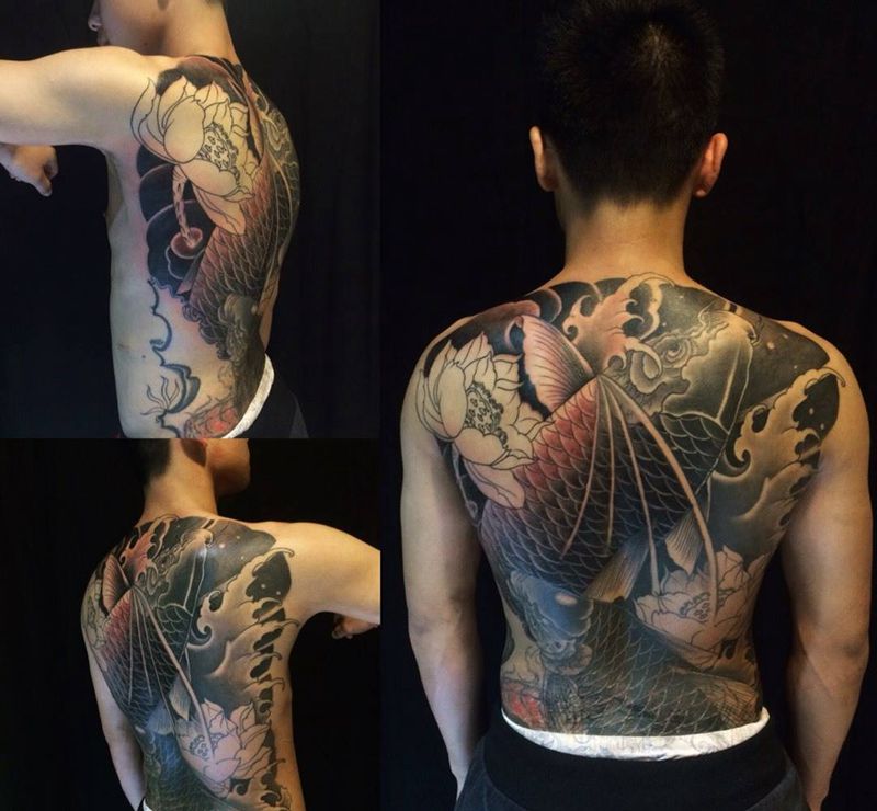 当前位置: 首页 >广西南宁市纹身店-云鹤刺青纹身店纹身图案>双鱼纹身图片_手稿成品背部臀部传统动物原创静物植物纹身图案