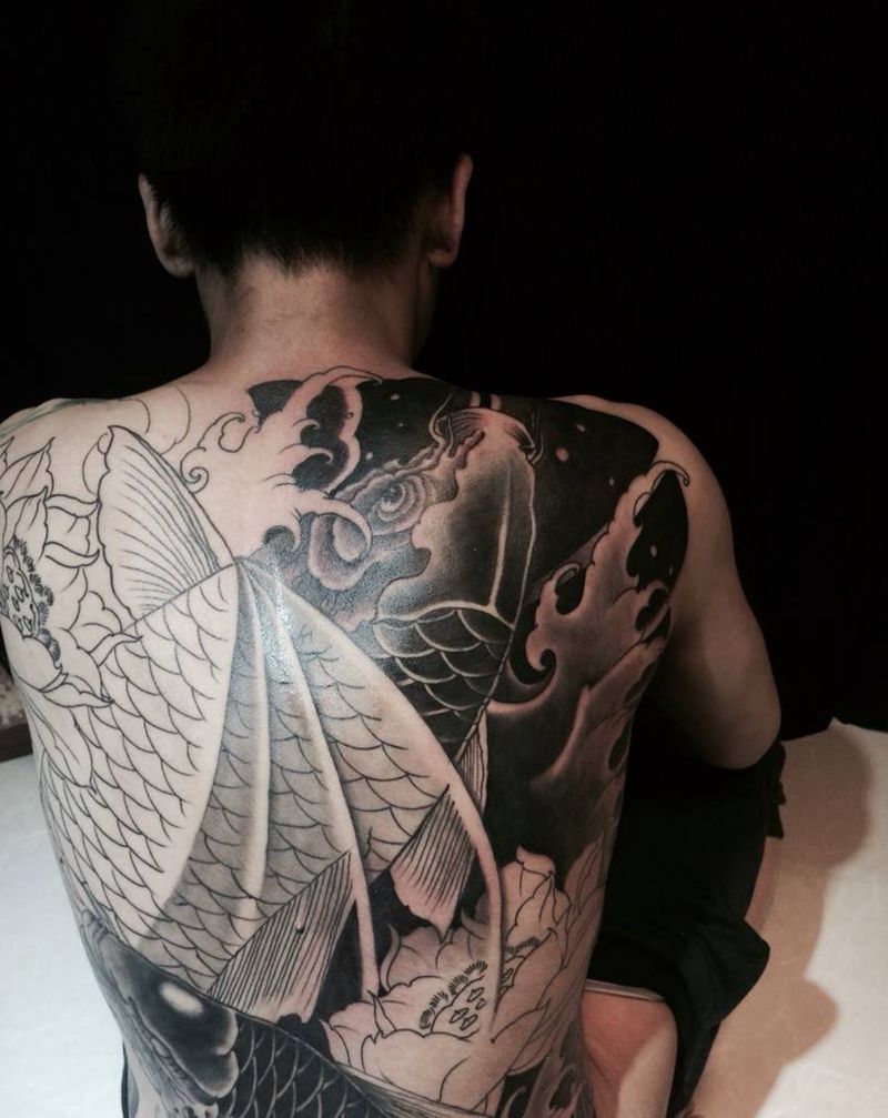 当前位置: 首页 >广西南宁市纹身店-云鹤刺青纹身店纹身图案>满背鱼纹身图片_成品背部传统原创植物动物静物纹身图案