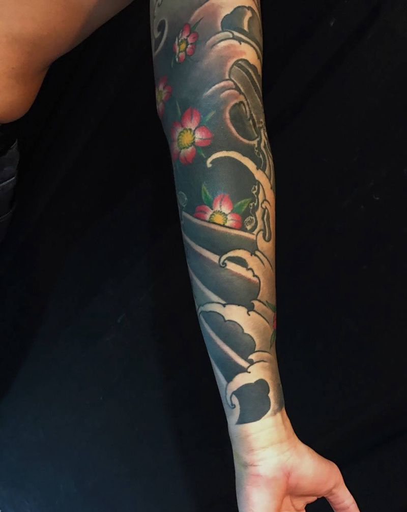当前位置: 首页 >广西南宁市纹身店-云鹤刺青纹身店纹身图案>浪纹身图片_成品手稿传统手臂静物动物原创植物纹身图案