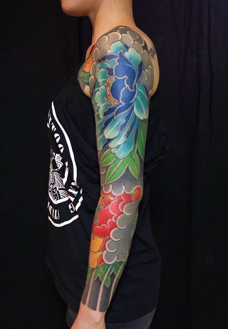 当前位置: 首页 >广西南宁市纹身店-云鹤刺青纹身店纹身图案>女生花臂纹身图片_手臂胸部老传统纹身图案