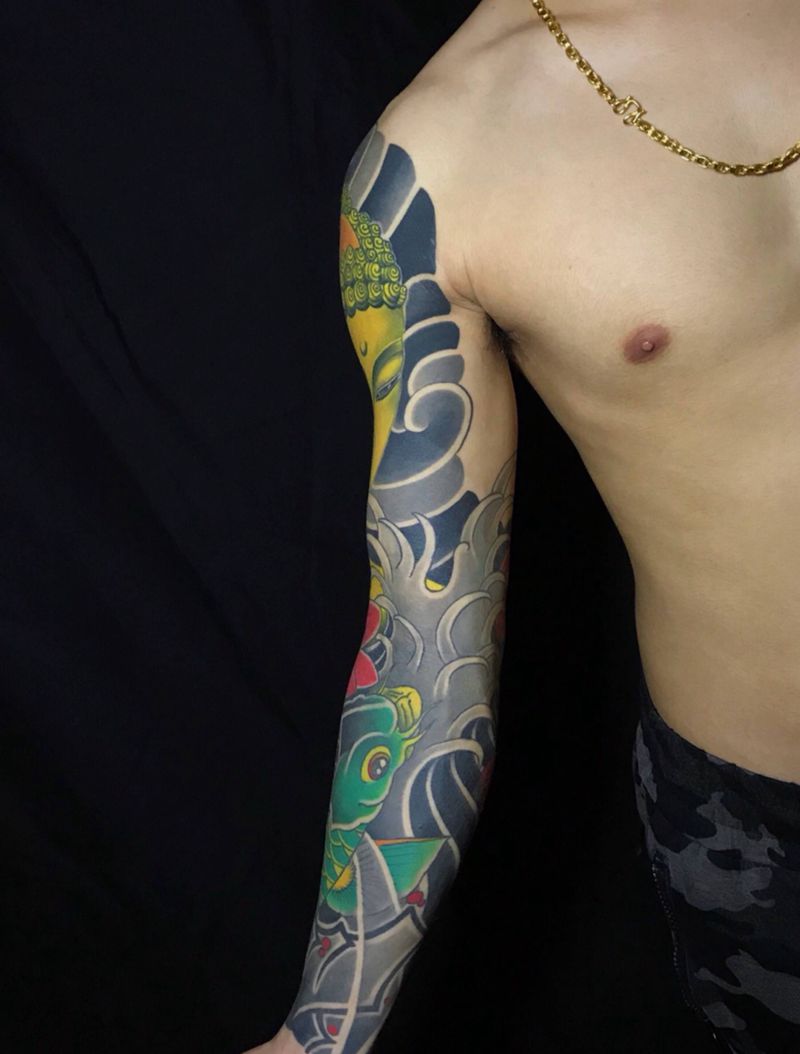当前位置: 首页 >广西南宁市纹身店-云鹤刺青纹身店纹身图案>佛首纹身图片_手臂手部新传统老传统纹身图案