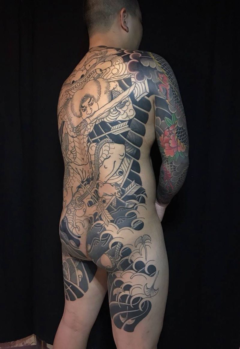 黑灰满背纹身图案
