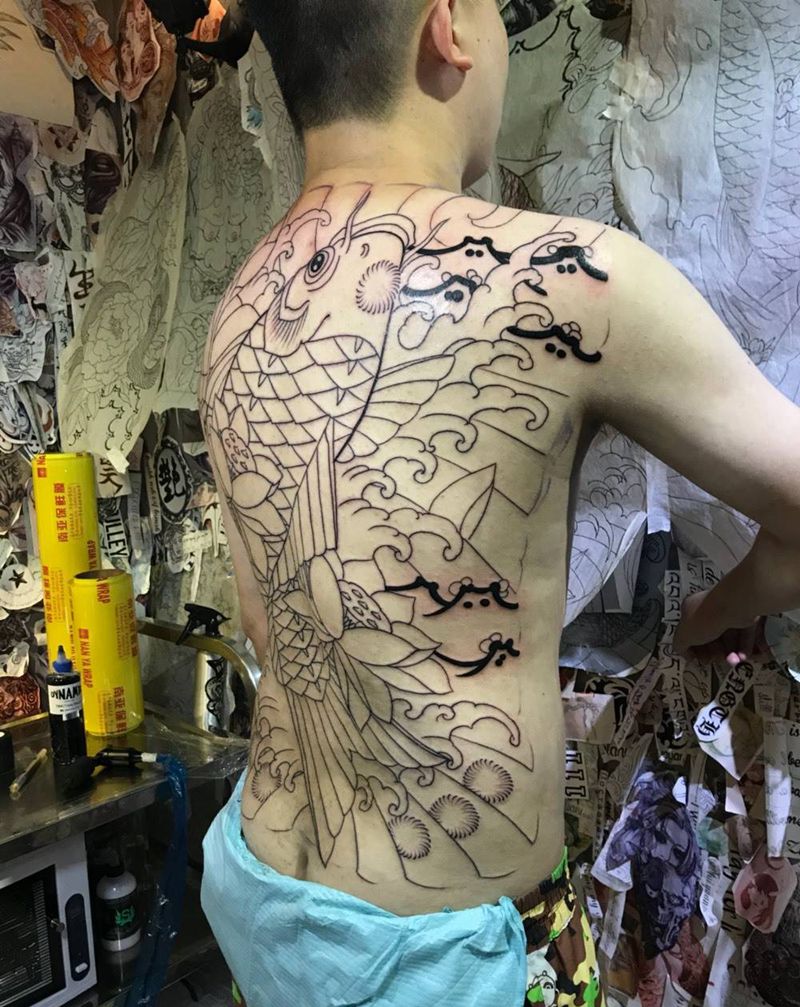 当前位置: 首页 >广西南宁市纹身店-云鹤刺青纹身店纹身图案>鲤纹身图片_背部老传统新传统纹身图案