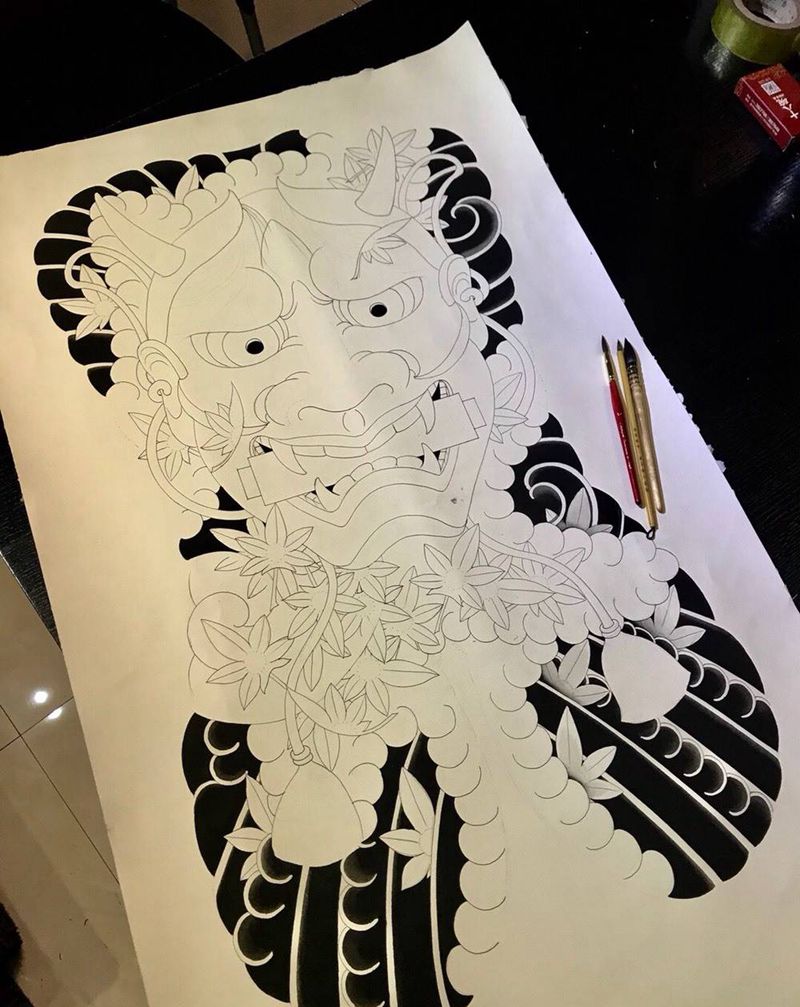 当前位置: 首页 >广西南宁市纹身店-云鹤刺青纹身店纹身图案>般若纹身图片_成品手稿背部腿部传统鬼神原创植物纹身图案
