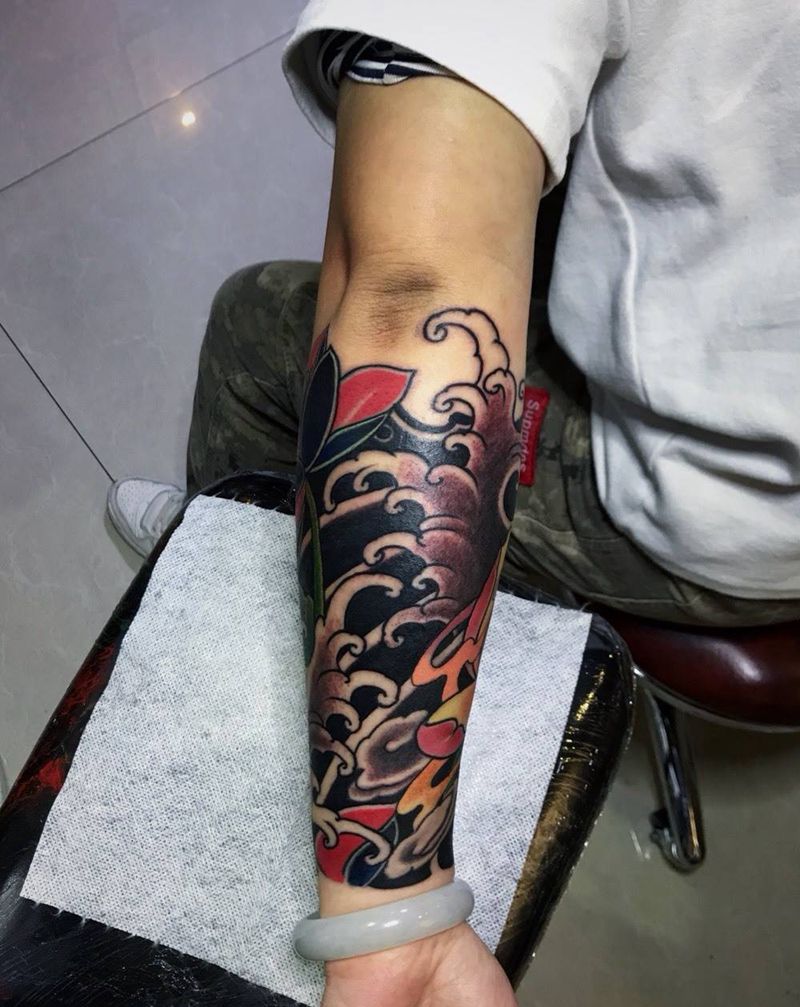 当前位置: 首页 >广西南宁市纹身店-云鹤刺青纹身店纹身图案>小臂荷花修改添加纹身图片_手臂手部老传统新传统纹身图案