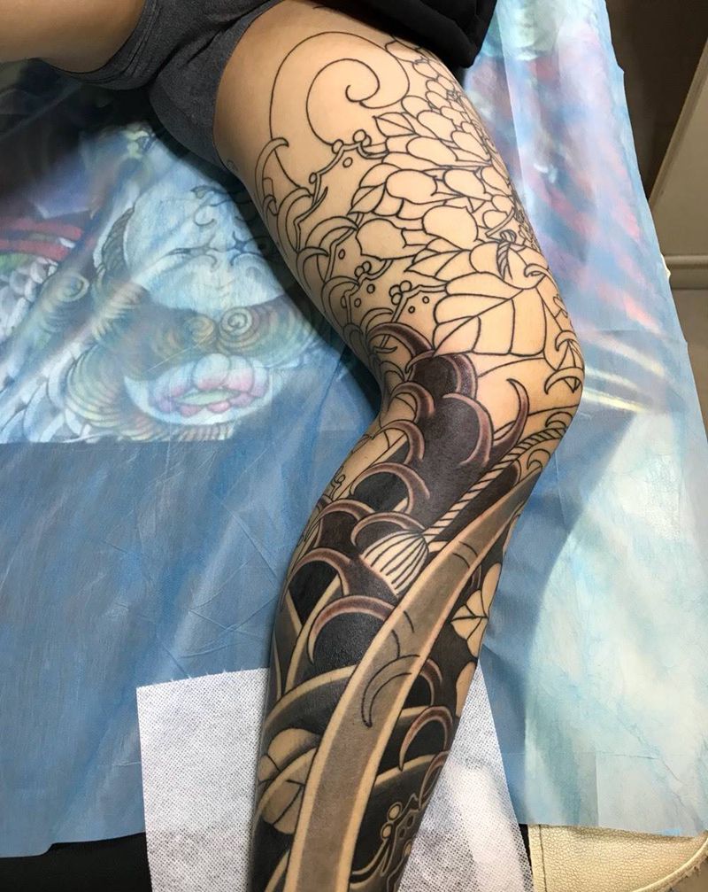 当前位置: 首页 >广西南宁市纹身店-云鹤刺青纹身店纹身图案>鬼武士花腿纹身图片_腿部脚部新传统老传统纹身图案