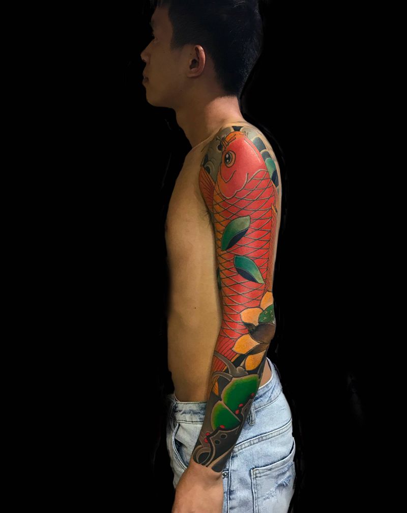 当前位置: 首页 >广西南宁市纹身店-云鹤刺青纹身店纹身图案>传统花臂鲤鱼纹身图片_手臂手部老传统新传统纹身图案