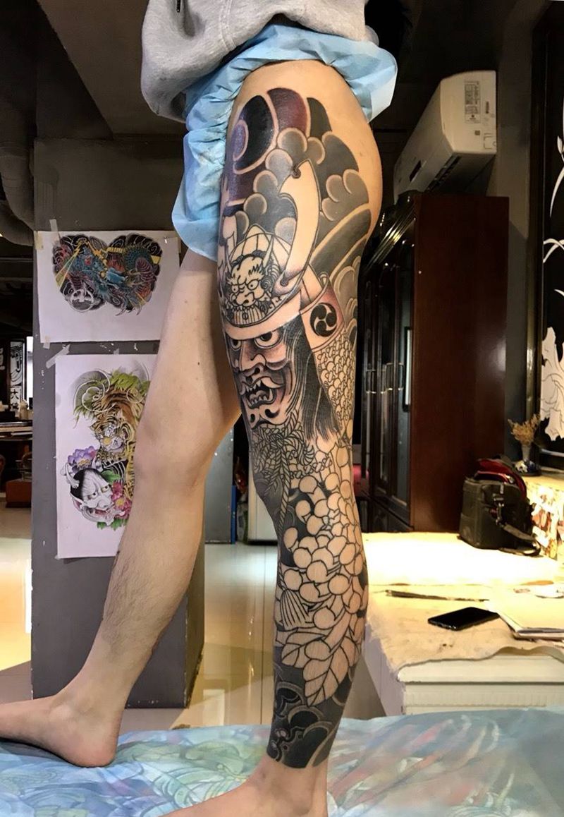 当前位置: 首页 >广西南宁市纹身店-云鹤刺青纹身店纹身图案>鬼武士纹身图片_腿部脚部老传统新传统纹身图案