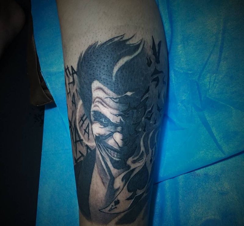 • T包小腿吹火男+阿多福纹身图片_腿部老传统新传统吹火男阿