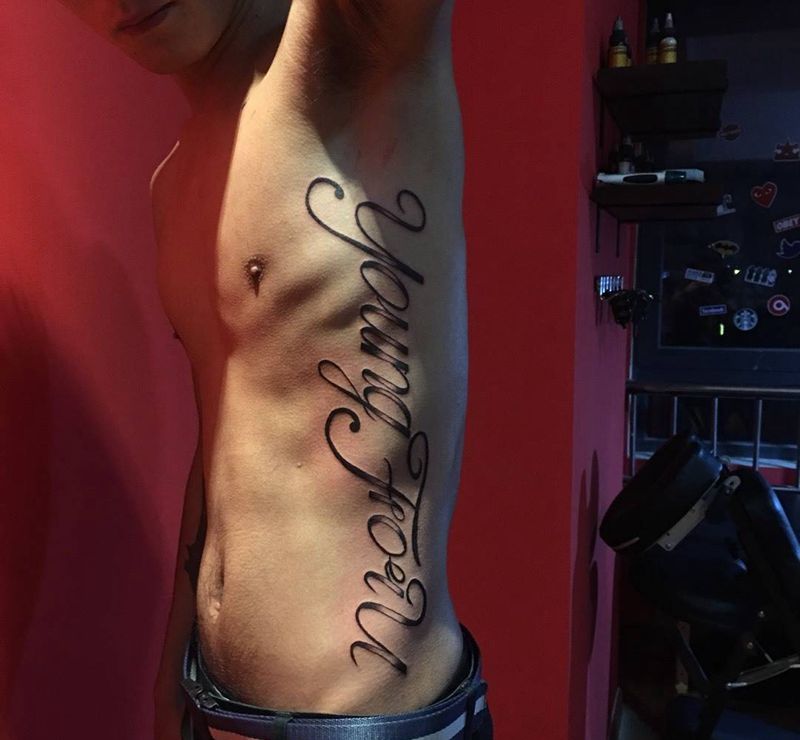 • T关于私处得爱!纹身图片_成品腹部清新字符图腾纹身图案