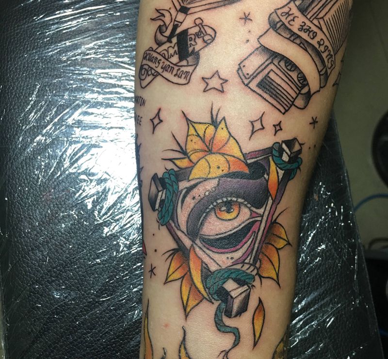 • T包小腿吹火男+阿多福纹身图片_腿部老传统新传统吹火男阿