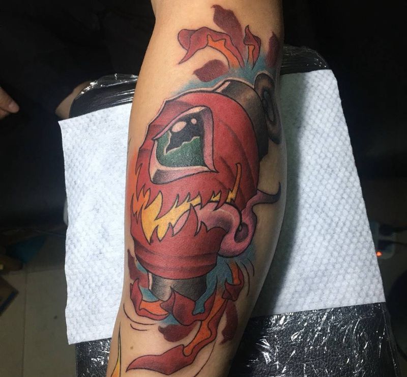 • T包小腿吹火男+阿多福纹身图片_腿部老传统新传统吹火男阿