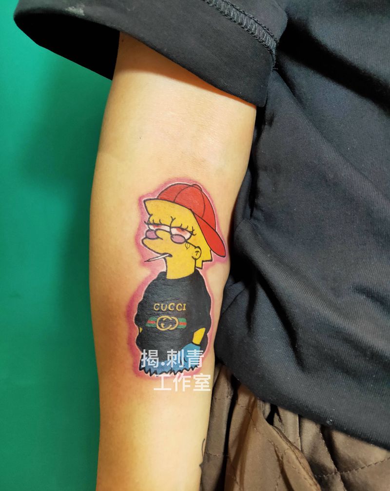 当前位置: 首页 >广西南宁市纹身店-揭 ·刺青纹身图案>辛普森纹身图片_手臂水彩New School纹身图案
