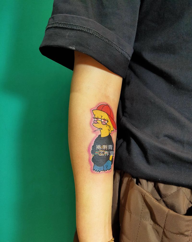 当前位置: 首页 >广西南宁市纹身店-揭 ·刺青纹身图案>辛普森纹身图片_手臂水彩New School纹身图案