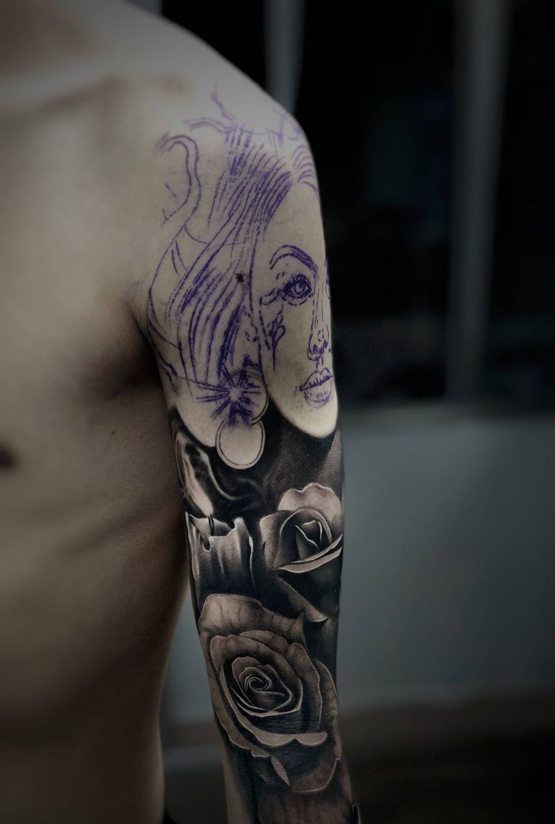 当前位置: 首页 >广西柳州市纹身店-如梦令刺青文化纹身图案>欧美人物纹身图片_手臂欧美写实玫瑰花蜡烛纹身图案
