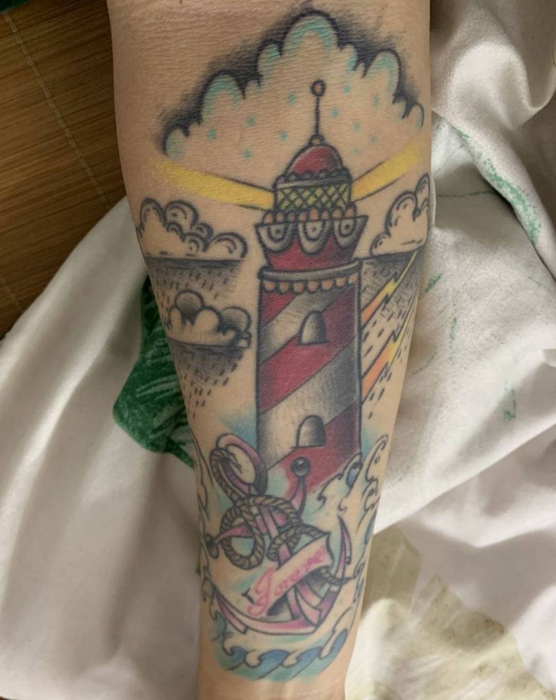 当前位置: 首页 >广西柳州市纹身店-如梦令刺青文化纹身图案>灯塔纹身图片_手臂Old School纹身图案