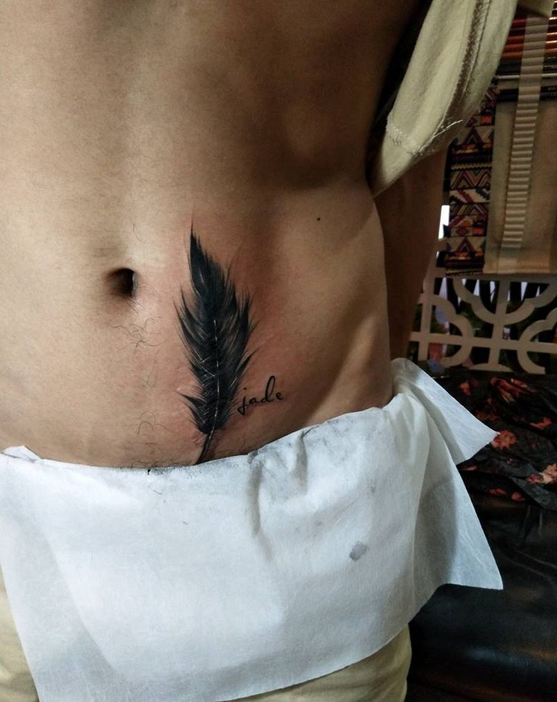 当前位置: 首页 >广西柳州市纹身店-如梦令刺青文化纹身图案>遮盖增生疤痕 羽毛纹身图片