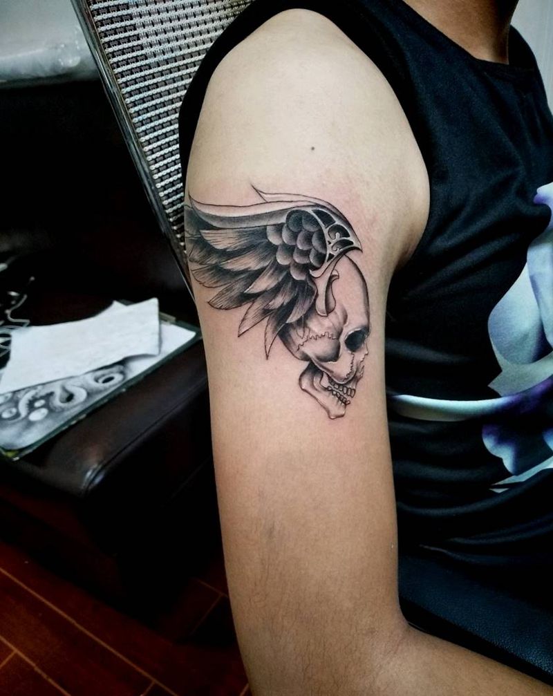 当前位置: 首页 >广西柳州市纹身店-如梦令刺青文化纹身图案>骷髅头加翅膀阿