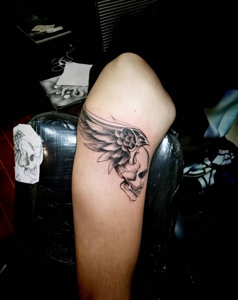 当前位置: 首页 >广西柳州市纹身店-如梦令刺青文化纹身图案>骷髅头加翅膀阿