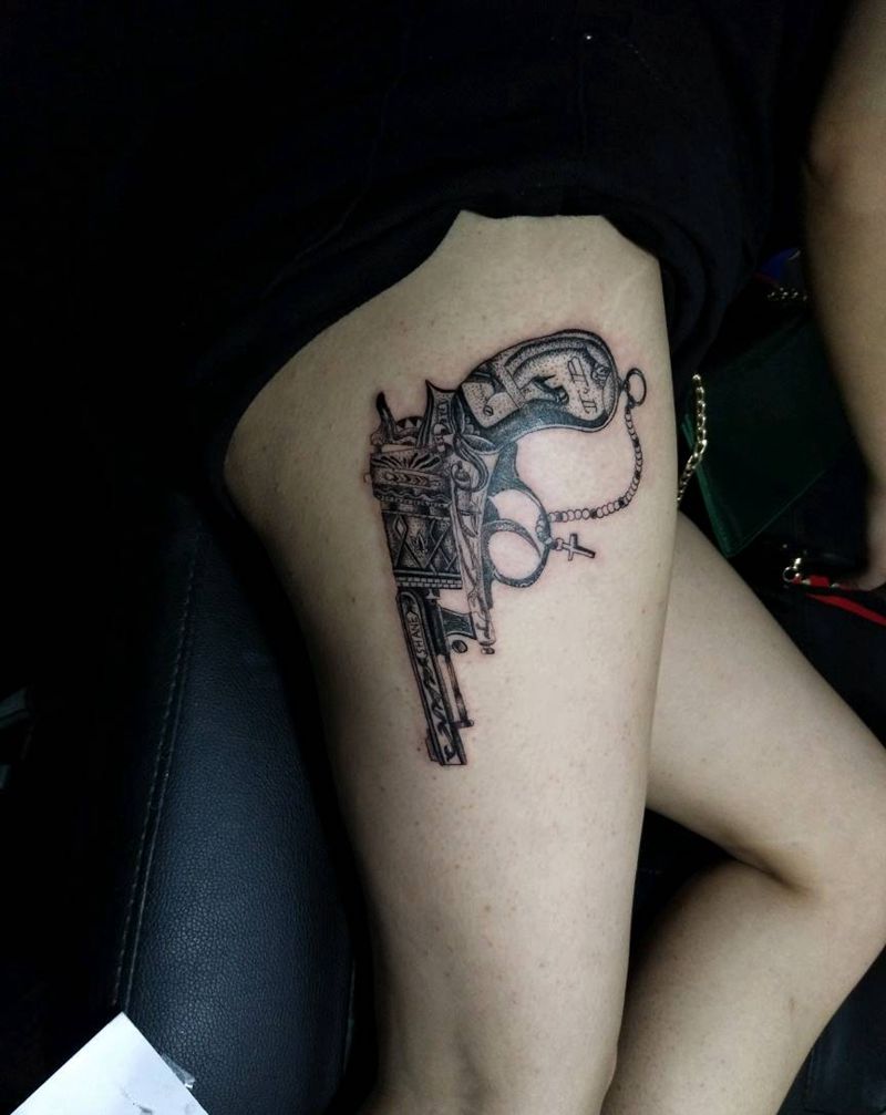 当前位置: 首页 >广西柳州市纹身店-如梦令刺青文化纹身图案>点刺 手枪纹身图片