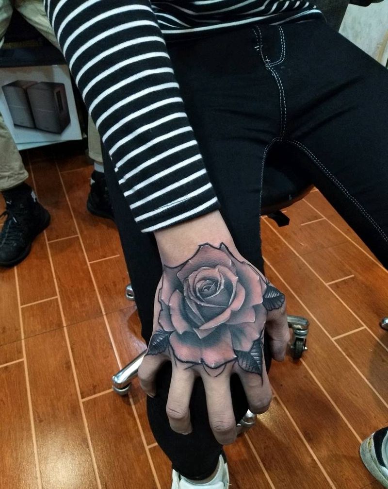 • 手背潮流时尚的玫瑰花眼睛纹身图案