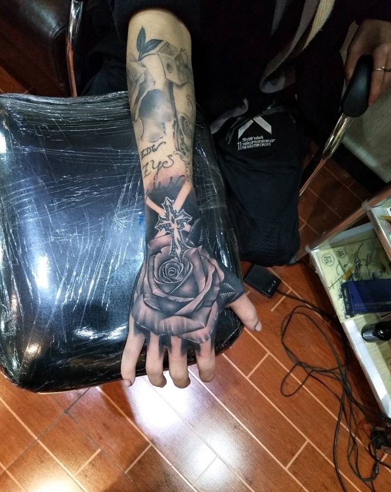 当前位置: 首页 >广西柳州市纹身店-如梦令刺青文化纹身图案>玫瑰手背设计 (十字架是旧图纹身图片